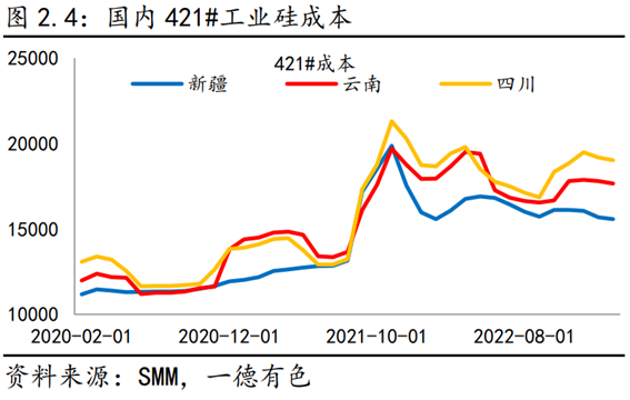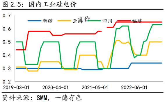 電力供應(yīng)及電價問題成為制約南方工業(yè)硅企業(yè)順利生產(chǎn)的主要問題,據(jù)了解云南地區(qū)執(zhí)行電價相較2022年比上調(diào)了3分/度;福建地區(qū)若進(jìn)線電壓高即過網(wǎng)費低,當(dāng)下綜合電價最低為6.2毛/度,過網(wǎng)費高的企業(yè)執(zhí)行綜合電價達(dá)到6.6-6.7毛/度。同時福建地區(qū)亦有水電,也開始執(zhí)行浮動電價,一般年底枯水期電價會有所上漲5分/度左右,且今年開始執(zhí)行尖峰電價,當(dāng)?shù)仄髽I(yè)電力成本呈現(xiàn)上漲態(tài)勢。