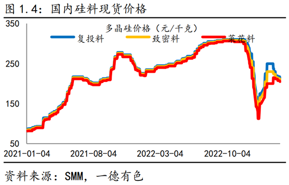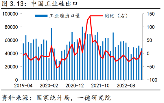 據(jù)海關(guān)統(tǒng)計2023年1-2月份中國工業(yè)硅累計凈出口9.94萬噸,同比減少0.3%,預(yù)計全年凈出口量63萬噸,同比增長1.6%。歐洲雖然力推《工業(yè)凈零法案》,但落地尚需要時間,2023年對出口市場難以形成實質(zhì)性影響。