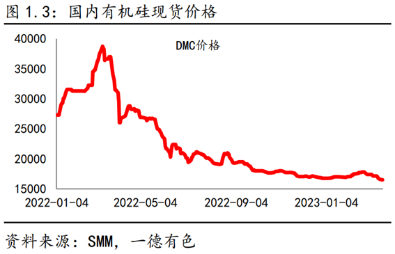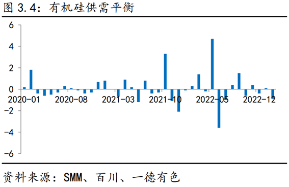 據(jù)統(tǒng)計2023年新增產(chǎn)能累計185萬噸,預(yù)計全年有機(jī)硅產(chǎn)量210萬噸,增速13.5%,對應(yīng)工業(yè)硅消費109萬噸左右,增量13萬噸。