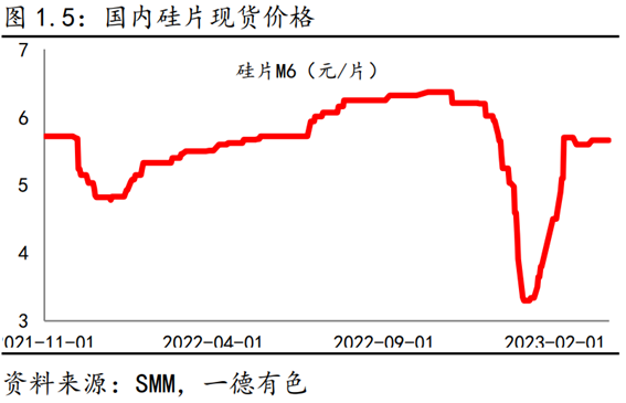 據(jù)統(tǒng)計2023年一季度新增產(chǎn)能10-15萬噸,二季度新增產(chǎn)能30萬噸,三季度新增產(chǎn)能50萬噸,四季度新增產(chǎn)能10萬噸,由于投產(chǎn)后需要2-3個月出產(chǎn)品,產(chǎn)品爬坡期為3-6個月,因此下半年多晶硅產(chǎn)量貢獻(xiàn)較多。