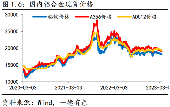 有機(jī)硅的行業(yè)洗牌仍在繼續(xù),2022年有機(jī)硅行業(yè)產(chǎn)量同比增長超20%,但開工率卻呈現(xiàn)下降確實,隨著過去一年新增產(chǎn)能的達(dá)產(chǎn)釋放,2023年1-2月份中國有機(jī)硅產(chǎn)量更是創(chuàng)出新高,開工率也隨之增加,但行業(yè)平均利潤卻依舊面臨虧損狀態(tài)。終端地產(chǎn)、汽車等行業(yè)消費不佳,市場情緒趨弱采購積極性不高,造成有機(jī)硅價格修復(fù)缺乏動力。多晶硅行業(yè)利潤豐厚行業(yè)開工率始終維持頂部區(qū)間,因此對工業(yè)硅的消費存在保障。多晶硅雖然供應(yīng)過剩的局面不改且價格出現(xiàn)回落,但受迫于多晶硅行業(yè)技術(shù)壁壘較高導(dǎo)致全行業(yè)利潤保持在多晶硅板塊。受海外宏觀風(fēng)險持續(xù)不斷造成電解鋁價格持續(xù)萎靡低位震蕩,鋁合金市場價格也隨之波動,且隨著廢鋁使用量的增加,合金行業(yè)對工業(yè)硅需求保持平穩(wěn)且看不到向上的驅(qū)動。