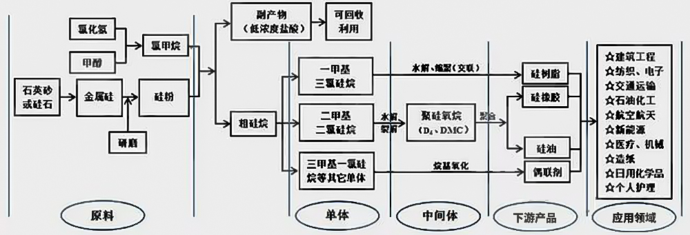 有機(jī)硅本身是一種新興的高性能材料,具有優(yōu)異的耐溫特性、耐候性、電氣絕緣性、生理惰性、低表面張力和低表面能等特性,因此具有極大的科研價(jià)值及應(yīng)用潛力,為整個(gè)材料工業(yè)提供了材料基礎(chǔ)和技術(shù)支撐,被譽(yù)為“工業(yè)味精”以及“科技發(fā)展催化劑”??梢灶A(yù)料,在未來(lái)相當(dāng)長(zhǎng)的一段時(shí)期內(nèi),有機(jī)硅材料仍將繼續(xù)在建筑工程、紡織、電子、交通運(yùn)輸、石油化工、航空航天、新能源、醫(yī)療、機(jī)械、造紙、日化和個(gè)人護(hù)理品等關(guān)乎人們衣、食、住、行的領(lǐng)域?yàn)槿祟惖纳罘?wù)。