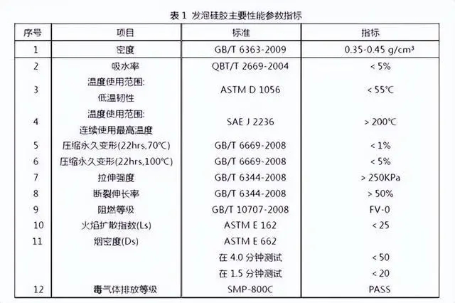 有機(jī)硅橡膠基體的密度為1.17g/cm3。但通過(guò)發(fā)泡處理,當(dāng)前的成熟工藝中所制備的有機(jī)硅橡膠泡沫材料的密度最低可為0.16-0.20 g/cm3,可被用于汽車座椅、頭枕等部件;而常規(guī)的有機(jī)硅橡膠泡沫材料(密度為0.45 g/cm3)則被廣泛用于密封、減震等部位的縫隙填充。