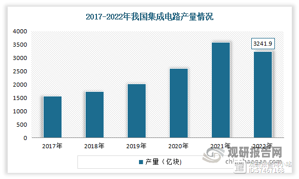 目前我國(guó)已經(jīng)成為全球最大的集成電路市場(chǎng)之一,集成電路產(chǎn)量穩(wěn)步提升。根據(jù)國(guó)家統(tǒng)計(jì)局統(tǒng)計(jì)數(shù)據(jù),2017-2022年我國(guó)集成電路產(chǎn)量從1564.9億塊增長(zhǎng)到3241.9億塊。