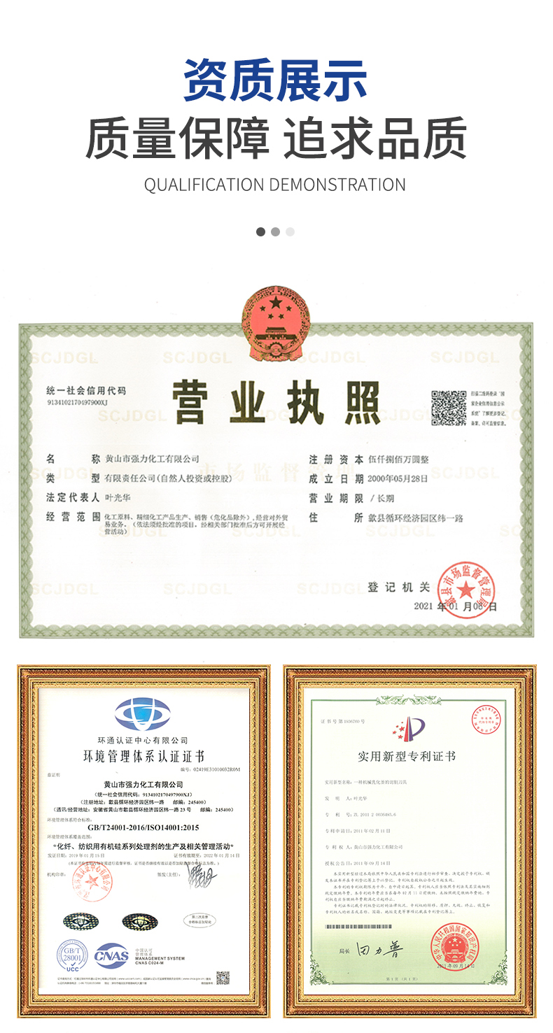 黃山市強(qiáng)力化工有限公司是一家專注于有機(jī)硅新材料,集研發(fā)、生產(chǎn)與銷售為一體的綜合性高新技術(shù)企業(yè)。公司已是有機(jī)硅行業(yè)內(nèi)較為知名的品牌,傾力于打造高品質(zhì)有機(jī)硅產(chǎn)品:二甲基硅油、乙烯基硅油、氨基硅油、乳化硅油、羥基硅油、含氫硅油與紡織品硅油等。砥礪前行,踔厲奮發(fā),強(qiáng)力純硅油,更高技術(shù),更好硅油。